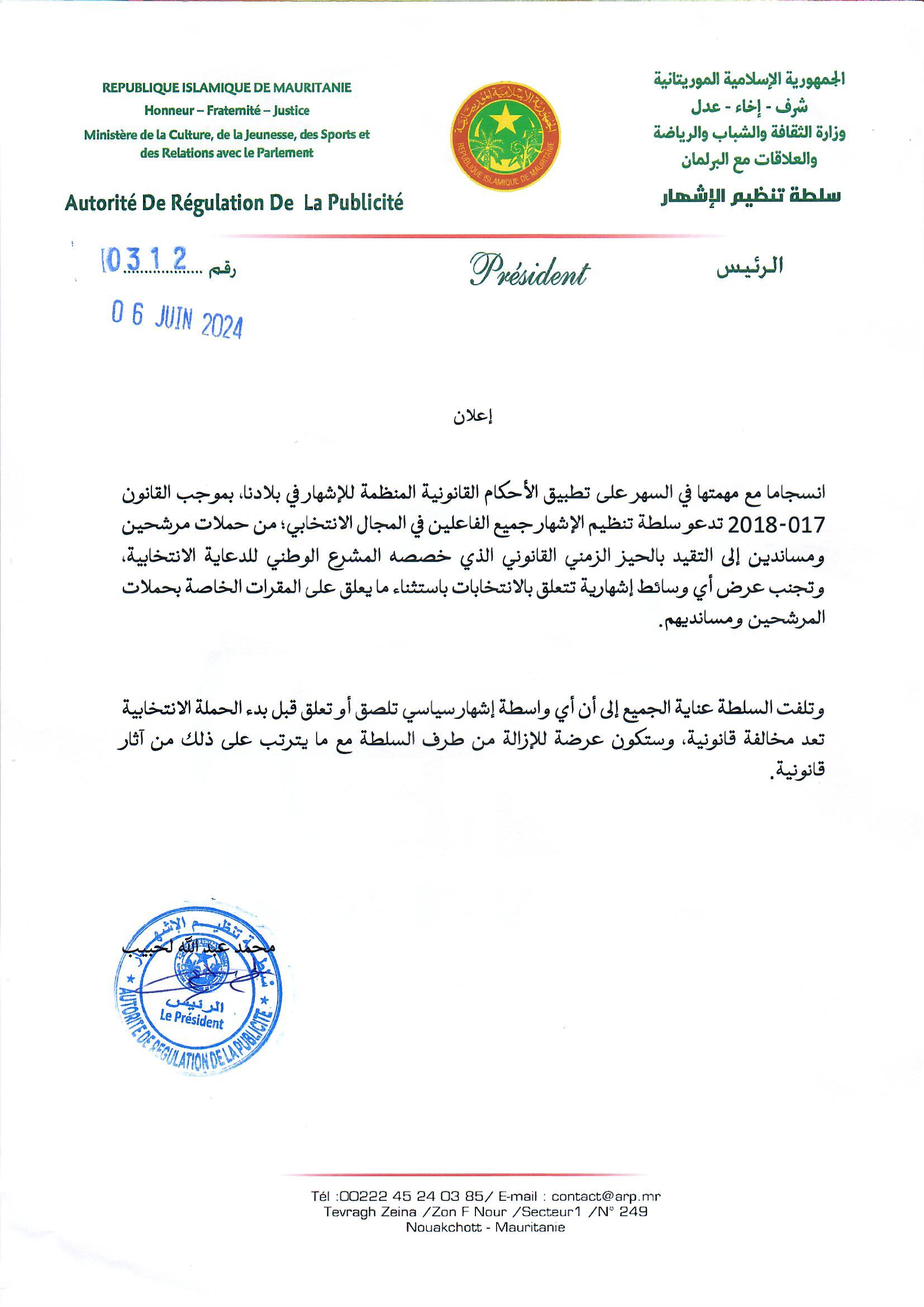 تعلن سلطة تنظيم الإشهار عن فتح باب الترشح لاختيار مراقبين لل... إقرأ المزيد